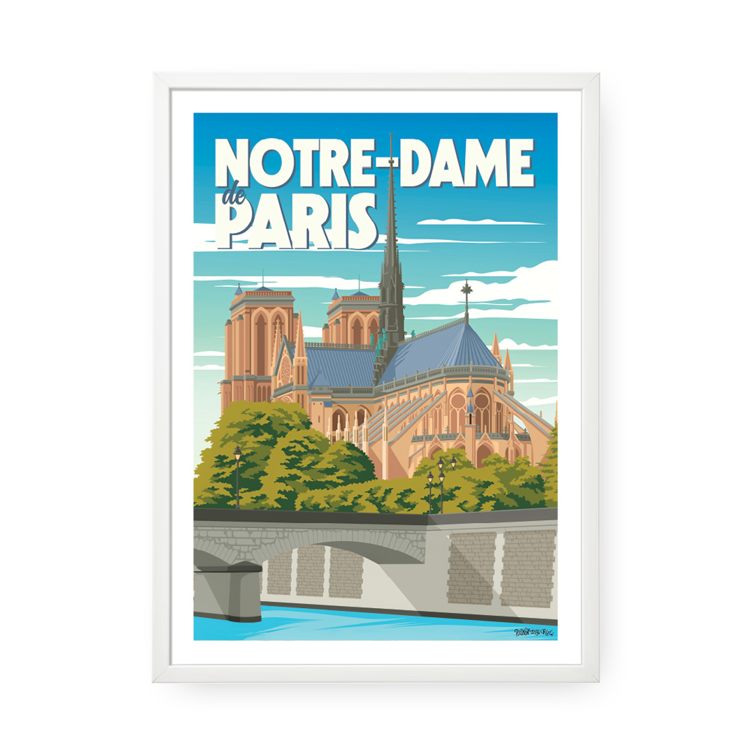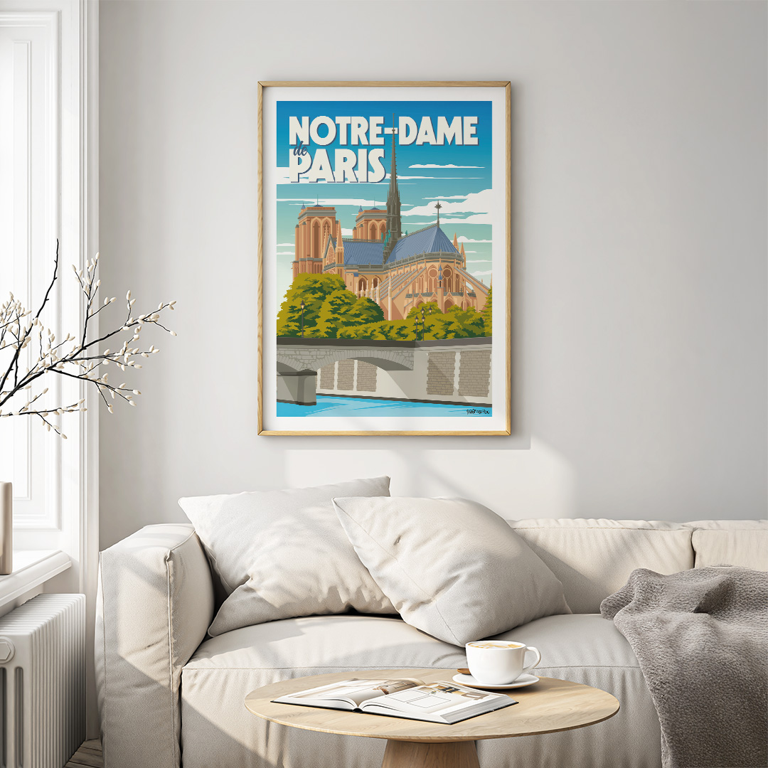🕍 Joyau gothique par excellence, la Cathédrale Notre-Dame de Paris incarne l’âme de la capitale. Ce poster de Notre-Dame rend hommage à ses tours emblématiques, ses gargouilles et son immense rosace.