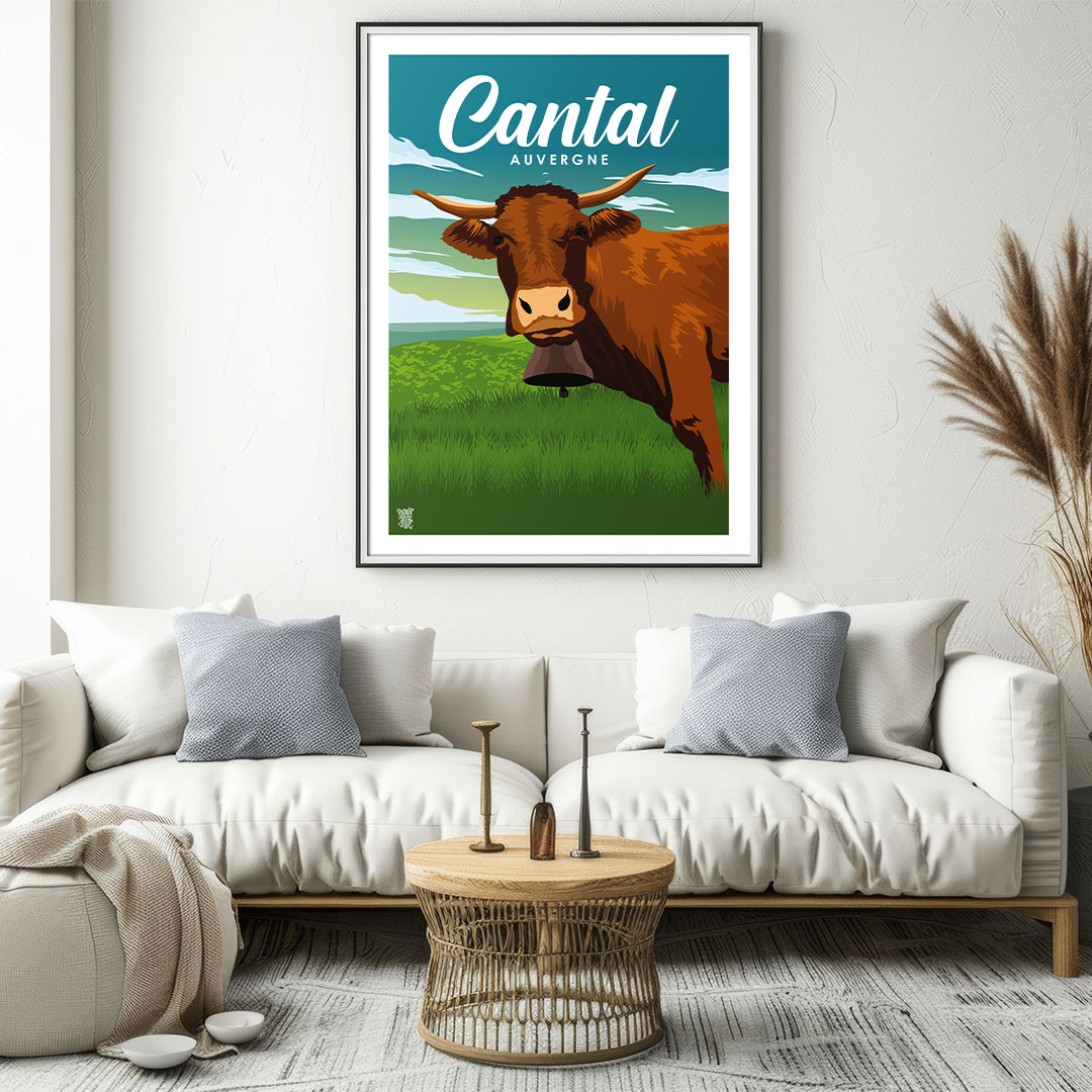 🐂 Massif, rustique et emblématique, la vache Salers règne sur les pâturages volcaniques d’Auvergne. Ce poster de vache Salers met en avant ses cornes en lyre, son pelage acajou et sa puissance tranquille.