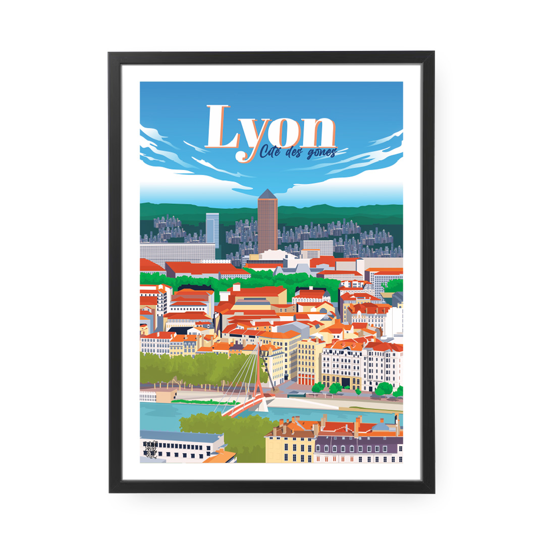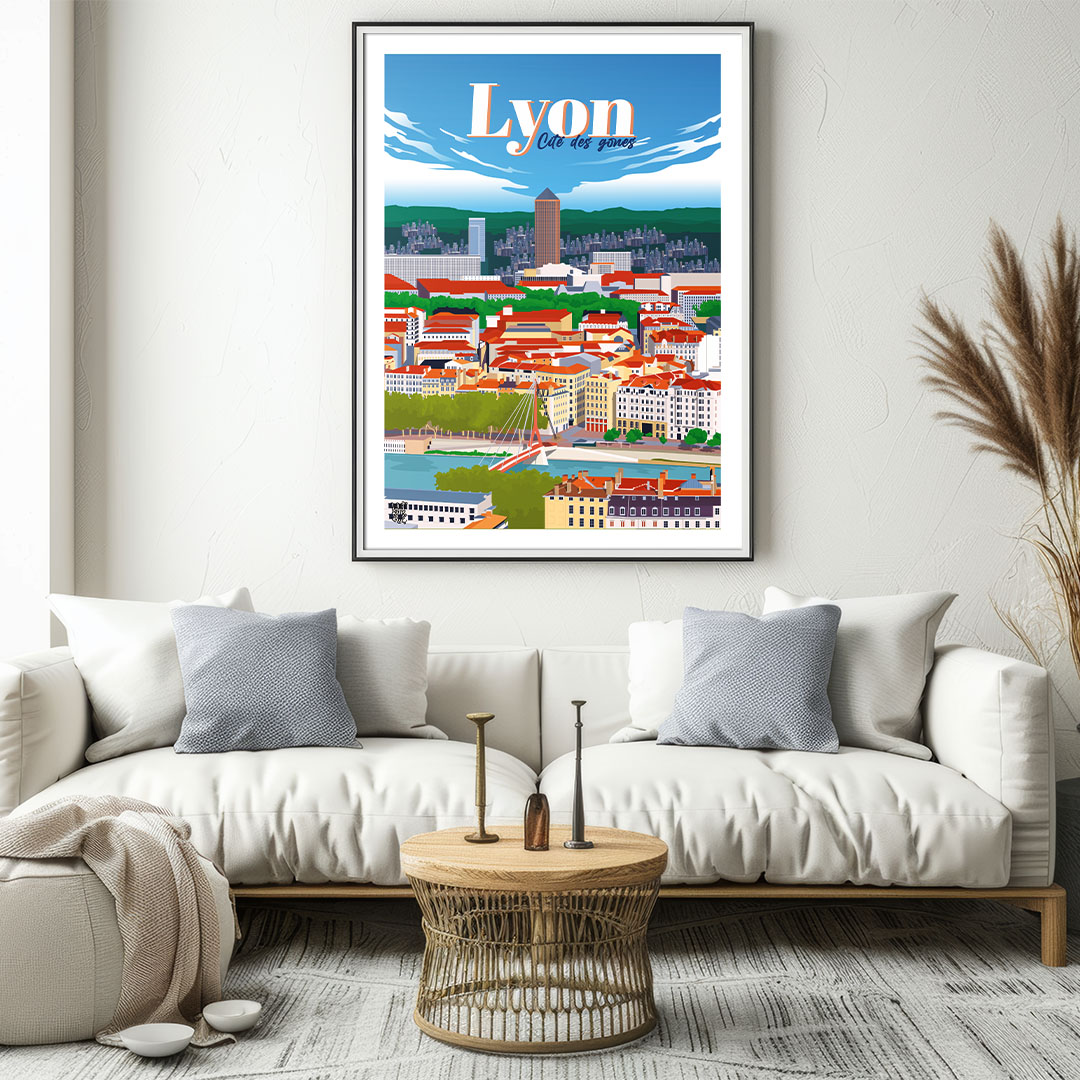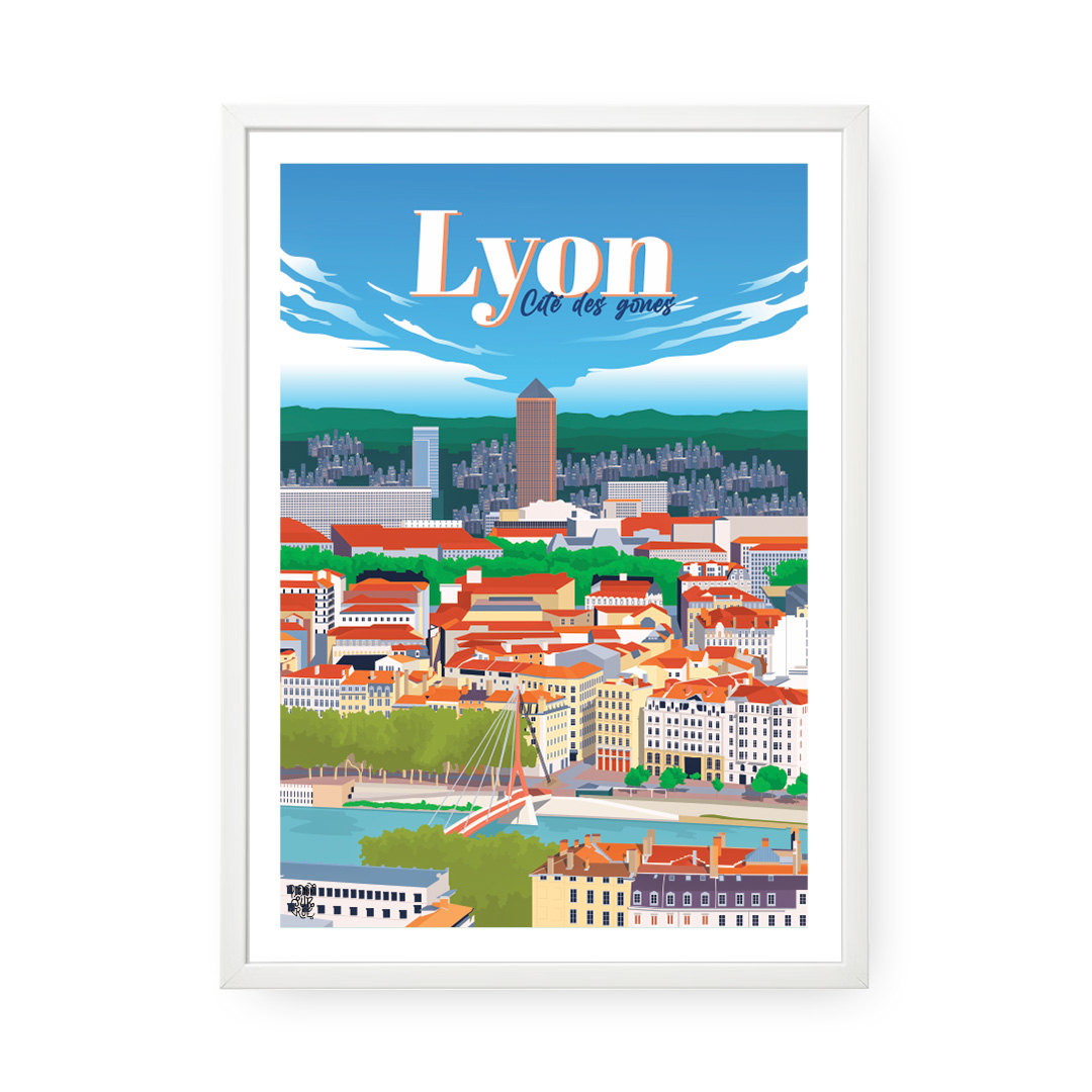 🏙️ Capitale des Gaules, Lyon marie la puissance romaine, le raffinement Renaissance et l’audace contemporaine. Ce poster de Lyon embrasse la colline de Fourvière, les traboules du Vieux-Lyon et les berges du Rhône.